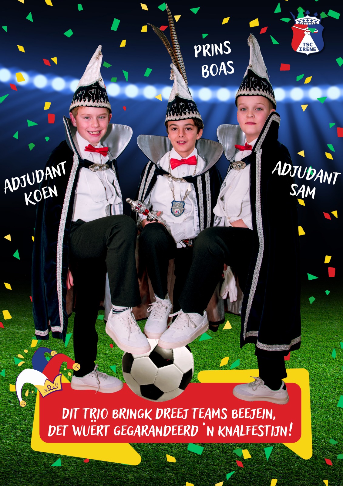 Prins Boas (Beurskens) is met zien adjudante Koen Storken en Sam van Hees beej TSC Irene oetgekomme as groeëte jeugtrio 2026! Boas is 9 jaor en sjpeult in de JO10-1, Koen is nog eine maond 10 jaor en sjpeult in de JO11-2 en de ouch 10 jäörige Sam in de JO11-3. Alle dreej de hiere zitte in groep 7 in ut Maasveld.