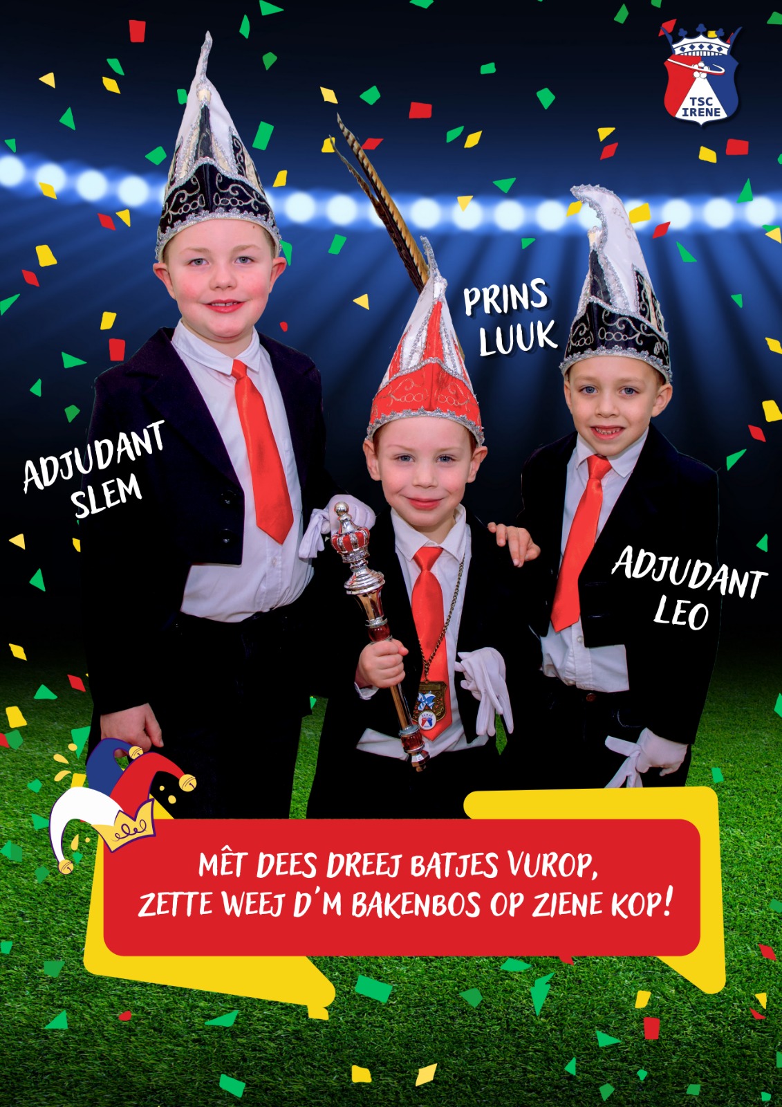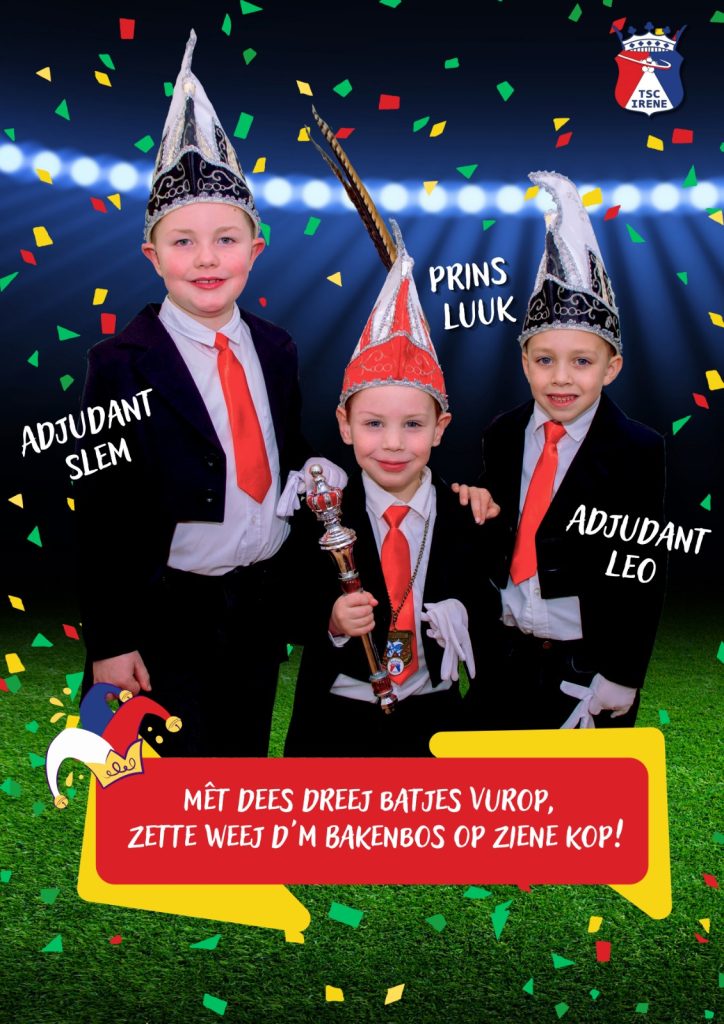 Beej de allerkleinste jeug van TSC Irene heers Prins Luuk (Neven), saame met zien adjes Slem Cox en Leo Boruczkowski! Dit trio sjpeult beej de mini-F. Prins Luuk en Slem zitte op basissjoeël OKC het Maasveld, Leo geit nao de Schalm.