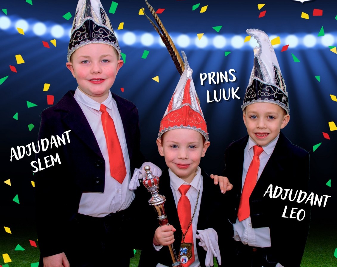 Prins Luuk met zien adjudante Slem en Leo zien ut TSC Irene-trio beej de allerkleinste jeug!