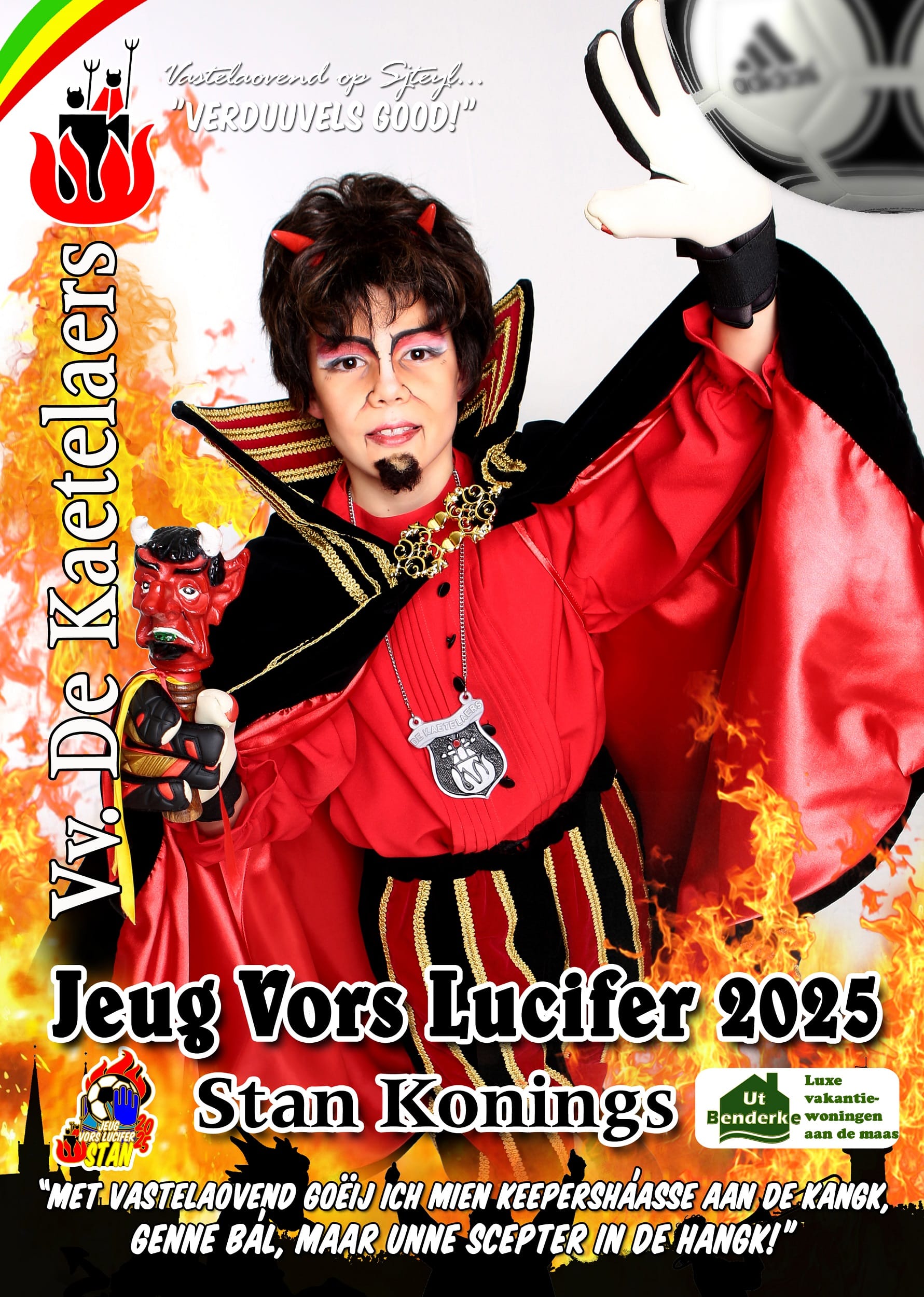 Sjportklöb Irene JO13-3 mót ut efkes zonger eure kieper doon, want dae, Stan Konings, is oétgeroope as Juegd Vors Lucifer 2025 van de Steyler Duuvelkes en Duuvelinnekes!